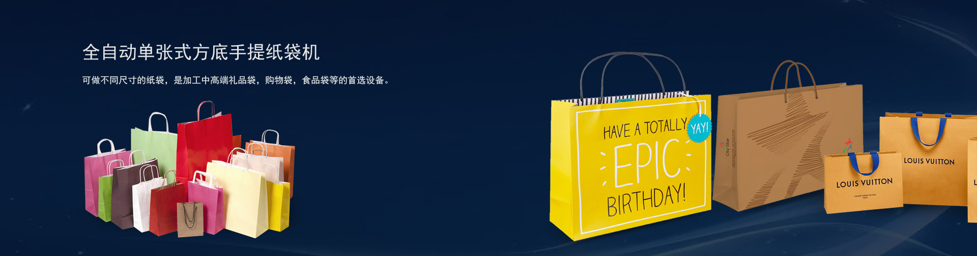 纸袋机一般是采用白卡纸、白板纸、铜板纸、牛皮纸为原料生产出多种类型的纸袋:包括手提袋、水泥袋、复膜纸袋、四层纸袋、服装袋、食品袋、购物袋、礼品袋等。纸袋机的种类包括牛皮纸袋机和全自动高速食品纸袋机。